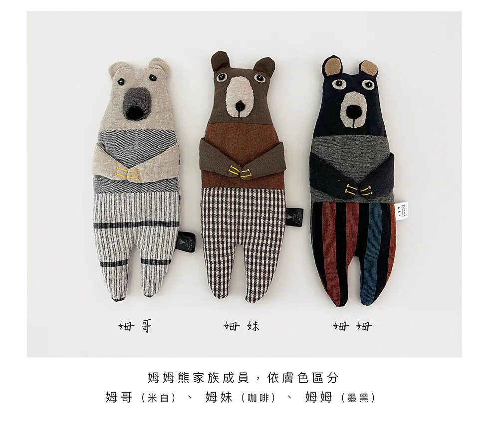 愛的動物眼枕,除了是一只療癒玩偶,還可加熱作為舒壓眼枕,或熱敷肚子、肩頸...等,平時也可用來當滑鼠手靠墊,用途多多,既療癒又實用。 眼枕由公平貿易組織認證的生產者手工縫製,使用餘布或回收布料製作動物的衣著配色可能有些許不同,每一隻衣服的配色都不一樣!純手工縫製,表情形狀也存在細微差異喔!專屬於你的動物熱敷枕,採隨機出貨。 姆姆熊家族成員,依膚色區分: 姆哥(米白)、姆妹(咖啡)、姆姆(墨黑) \舒適好用的秘密大公開/ 不同於一般市面上填充的紅豆或綠豆,細小的亞麻仁籽,不僅能快速均勻受熱,小小的顆粒也能更溫柔的服貼肌膚。 用法:加熱後,可當暖暖包熱敷於眼睛、肩頸、肚子⋯等,也可當滑鼠手靠墊。 加熱方法:放波爐使用中火(約700w),加熱約20-30秒。 身高:27cm 身寬:9.5cm 體重:195g 布料:100%棉 填充物:亞麻籽 純手工縫製,形狀/尺寸/重量難免有些許謨差,謝謝您的理解與體諒。 日常保養: - 日常加熱時便有殺菌消毒的效果,如擔心髒污可外包一層手帕後再使用。 - 平常不使用時請置於通風陰涼處,選免陽光長時間曝曮導致褪色。 - 眼枕內部填克亞麻籽,為避免種籽泡水後膨脹、並乾導硬化,請勿將整隻眼枕打濕浸泡。 產地:尼泊爾 About the makers: 尼泊爾公平貿易生產組織:MAHAGUTHI 主要為尼泊爾-加德滿都盆地的手工藝者提供一個國內與國際銷售平台的非營利組織,目前提供了近千名生產者,其中一半的生產者分佈在偏遠山區,多以女性為主,組織提供這些婦女在家工作的機會以增加收入。 除此之外,組織營運收入有40%提供給Tulsi Mehar Mahila Ashram 的婦女和他們的子女,資助食,衣,住,健康醫療,教育和職業訓練。 謝謝您!選擇公平貿易,幫助他們重返笑容和自由。