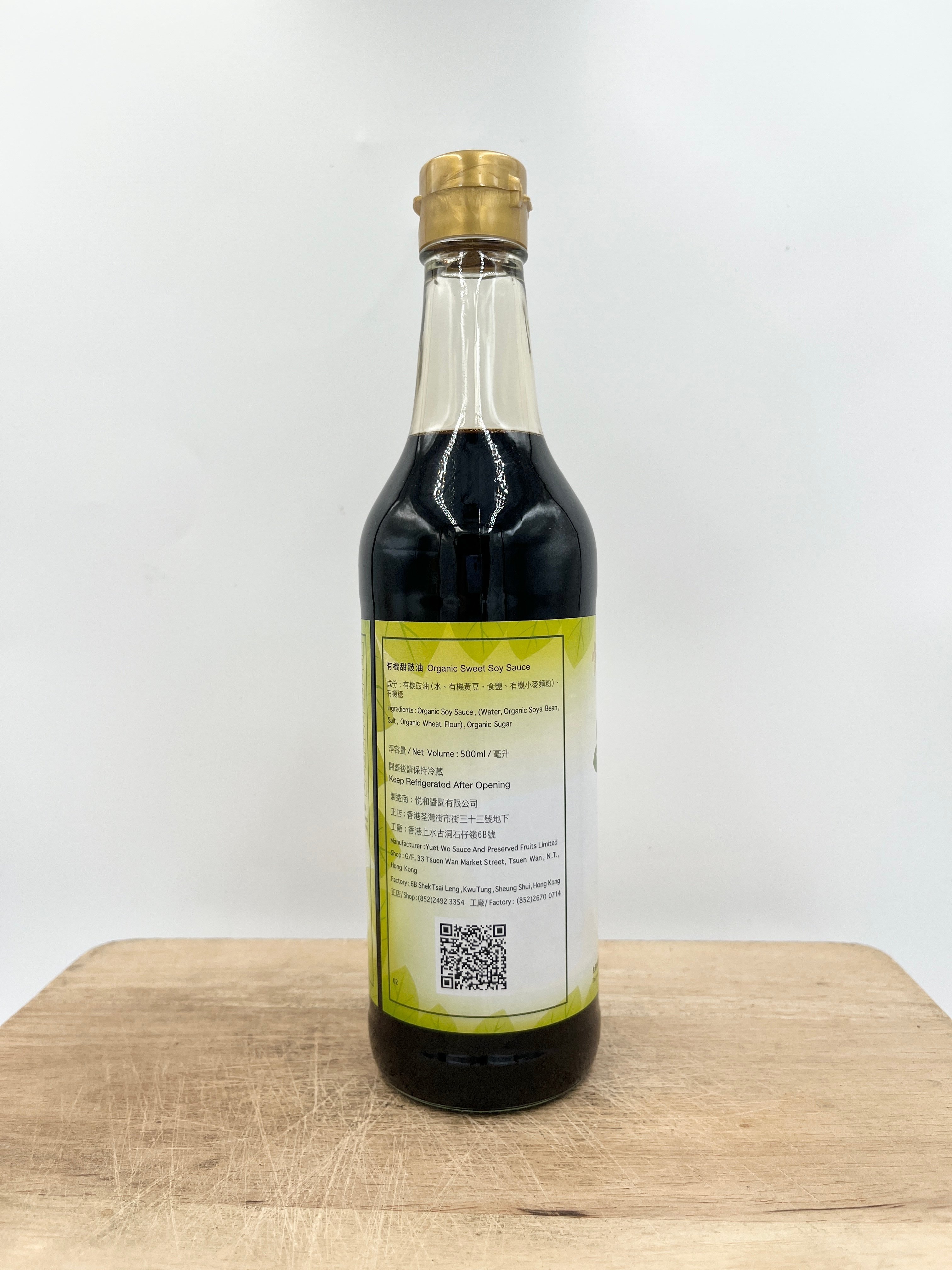 有機原料、天然醱酵、有機製造、有機認證。 座落新界東北古洞的傳統醬園,香港首家及唯一取得有機認證醬油廠。悅醬園創立於一九四五年,堅持在地釀造各類酒、醋、豉油及調味品,瞥眼間就釀了七十多個年頭。醬園大部分的生產工序都由人手操作,採用傳統「天然生曬」技巧生產豉油,黃豆無機因改造成份。這份嚴謹已傳承三代,師徒交接,陪伴了港人大半世紀。醬園曾在60年代因荃灣土地發展而搬遷到現址上水古洞北。回到現在,其所在地為東北發展計劃的一部分,於是再次面臨搬遷的考驗。 成份﹕有機豉油(有機黃豆、有機小麥麵粉、食鹽、水)、有機糖 產地﹕香港 Organic Sweet soya sauce is made in traditional method & fermented under the sun. The First Organic Certification Sauce Factory of Hong Kong. Founded in 1945,”Yuet Wo” insists on brewing all kinds of wine, vinegar, soy sauce and condiments in Hong Kong. It has already been brewing for more than 70 years in the blink of an eye. Most of the production processes in the sauce garden are operated by hand. The traditional “natural sun drying” technique is used to produce soy sauce, and the soybeans are not genetically modified. The passion has been passed down for three generations and has accompanied the people of Hong Kong for more than half a century. In the 1960s, the sauce garden was relocated to the current site of kwu Tung North in Sheung Shui due to the development of the land in Tsuen Wan. Back to the present, its location is part of the North East New Territories New Development Areas and is once again facing the test of relocation. Organic Soy Sauce (Organic Soybeans, Organic Wheat Flour, Salt, Water), Organic Sugar Product of Hong Kong