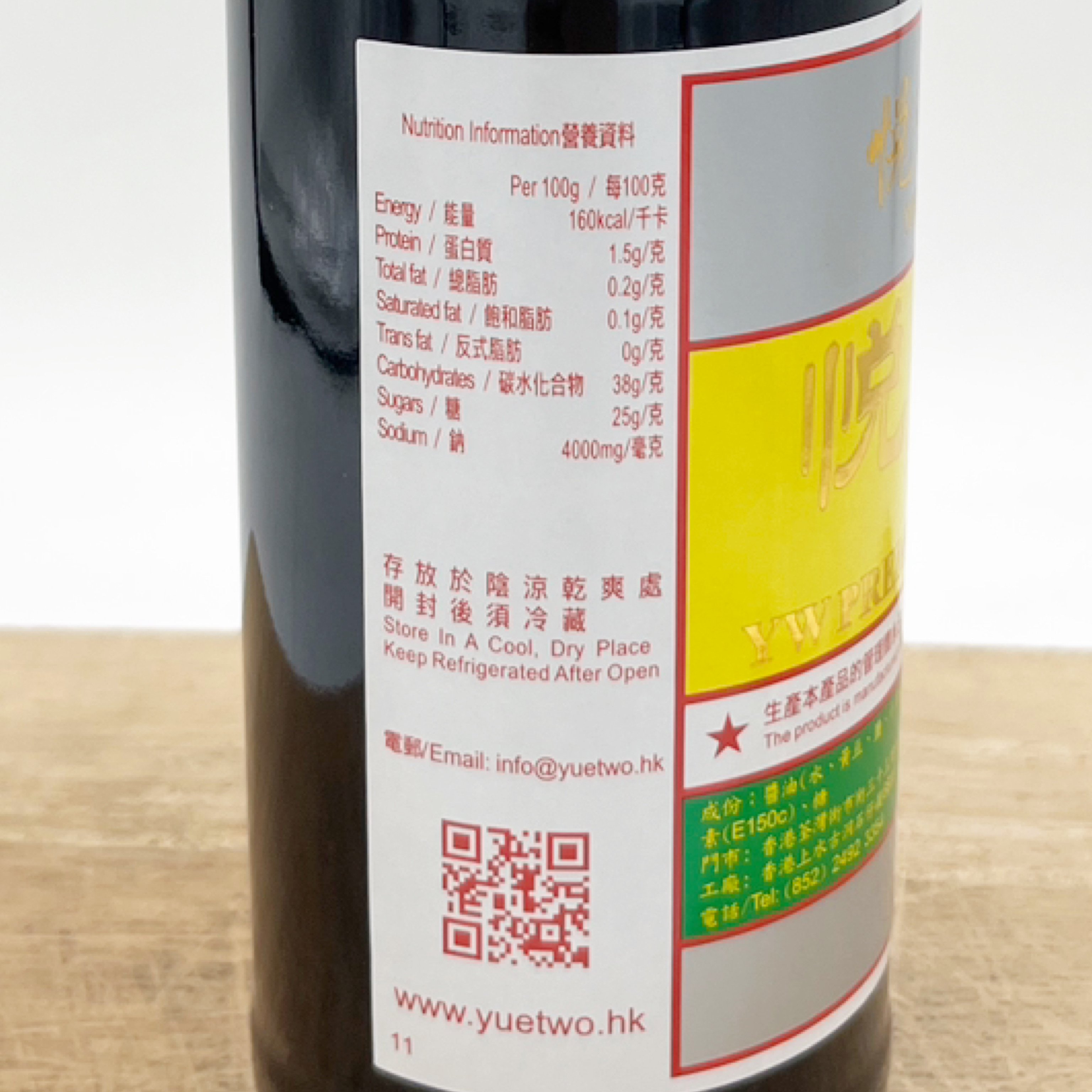 成份 - 醬油(水、黃豆、食鹽、小麥麵粉 )、糖、食鹽、增味劑(E621) 產地: 香港 關於悅和醬園 座落新界東北古洞的悅和醬園創立於一九四五年,堅持在地釀造各類酒、醋、豉油及調味品,瞥眼間就釀了七十多個年頭。這份嚴謹已傳承三代,師徒交接,陪伴了港人大半世紀。醬園曾在60年代因荃灣土地發展而搬遷到現址上水古洞北。回到現在,其所在地為東北發展計劃的一部分,於是再次面臨搬遷的考驗。