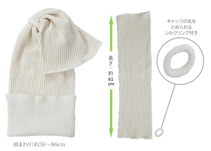 保護頭髮免受乾燥和摩擦的晚安帽子,在你睡覺時溫和地保護你的頭髮免受纏結、摩擦和靜電的影響;可調節的特長帽身,可以完整包覆長髮及耳朵,防止頭部受寒。 晚安帽就是睡覺時保護頭部的,許多家有長者的客人,一聽到這個概念就眼發光。其實很多老人家睡覺時頭部會凍,引發各式頭痛,但戴帽未必舒服,又容易甩,這個晚安帽的設計,可以自行調較長度,也包覆雙耳冇咁易甩,加上 Cocoonfit 自家透氣蠶絲物料,温暖、舒服又不會有束頭感。 其實晚安帽子除了保暖外,也針對想呵護秀髪的朋友,大家知道,磨擦會對頭髪構成損害,所以如果非常關注自己頭髮順滑度,可以考慮戴晚安帽子入睡,深層保護髮絲。 唯一要提醒是,請務必將頭髮完全吹乾才好套上哦!其實任何情況下都不要濕頭瞓覺哦! Cocoonfit 特製的蠶絲具有保温、吸濕及透氣性,夏季涼爽、冬季温暖,一年四季都可以用。 * 佩戴時請將頭髮全部收在帽子內。 * 洗頭後使用時,請先徹底擦乾頭髮。 物料:85% 天然蠶絲 13% 尼龍 2% 聚氨酯 洗濯方法:温水手洗 頭圍:36-86 cm 長度:61 cm 日本製造